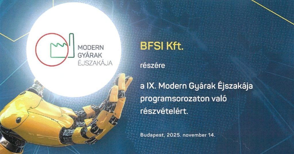 Kedves Partnereink, Követőink, Olvasóink! Örömmel jelentjük be, hogy a BFSI Kft. idén csatlakozik a Modern Gyárak Éjszakája programsorozathoz! Számunkra ez a kezdeményezés lehetőség arra, hogy megmutassuk: […]